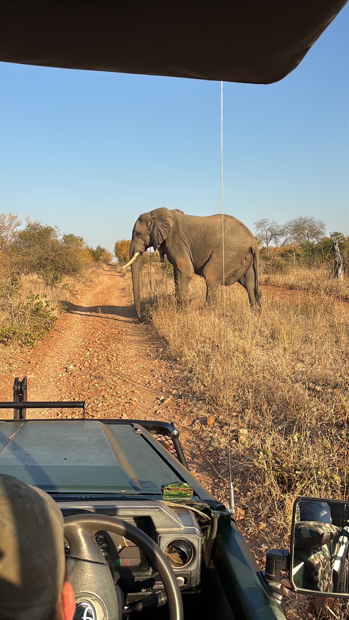 De spanning stijgt langzaam. Je rijdt richting een wildrijk gebied waar de kans groot is om de eerste dieren te zien. De omgeving voelt steeds avontuurlijker.